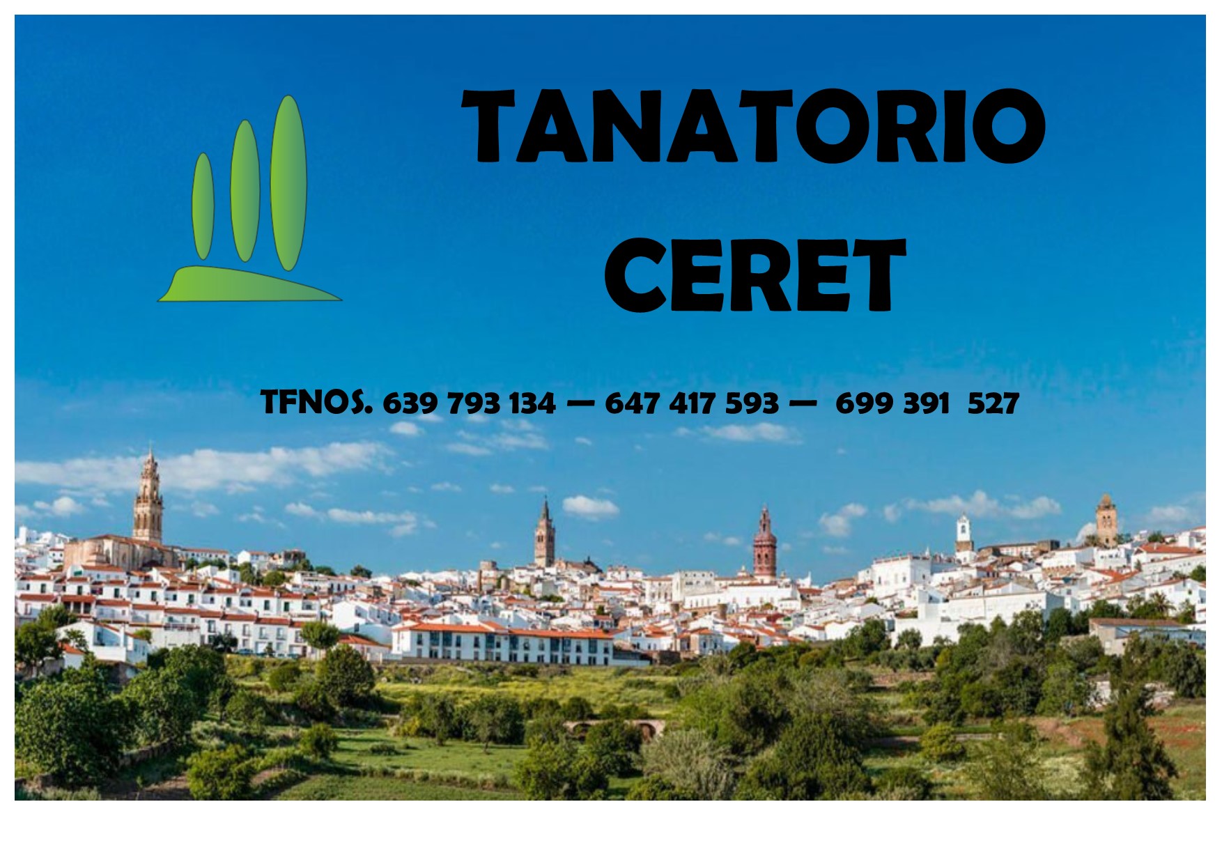 TanatorioCERET :Cómodas y modernas instalaciones: amplio recibidor, 3 salas amplias y cómodas para los familiares, salón comedor ( con neveras y microondas inividuales para cada sala) oficinas, sala de tramitación, sala de tanatopraxia, y exposición de féretrosGran variedad de arcas de primera calidad.Servicio de floristería.Gestión del servicio de incineración.Traslados nacionales e internacionales.